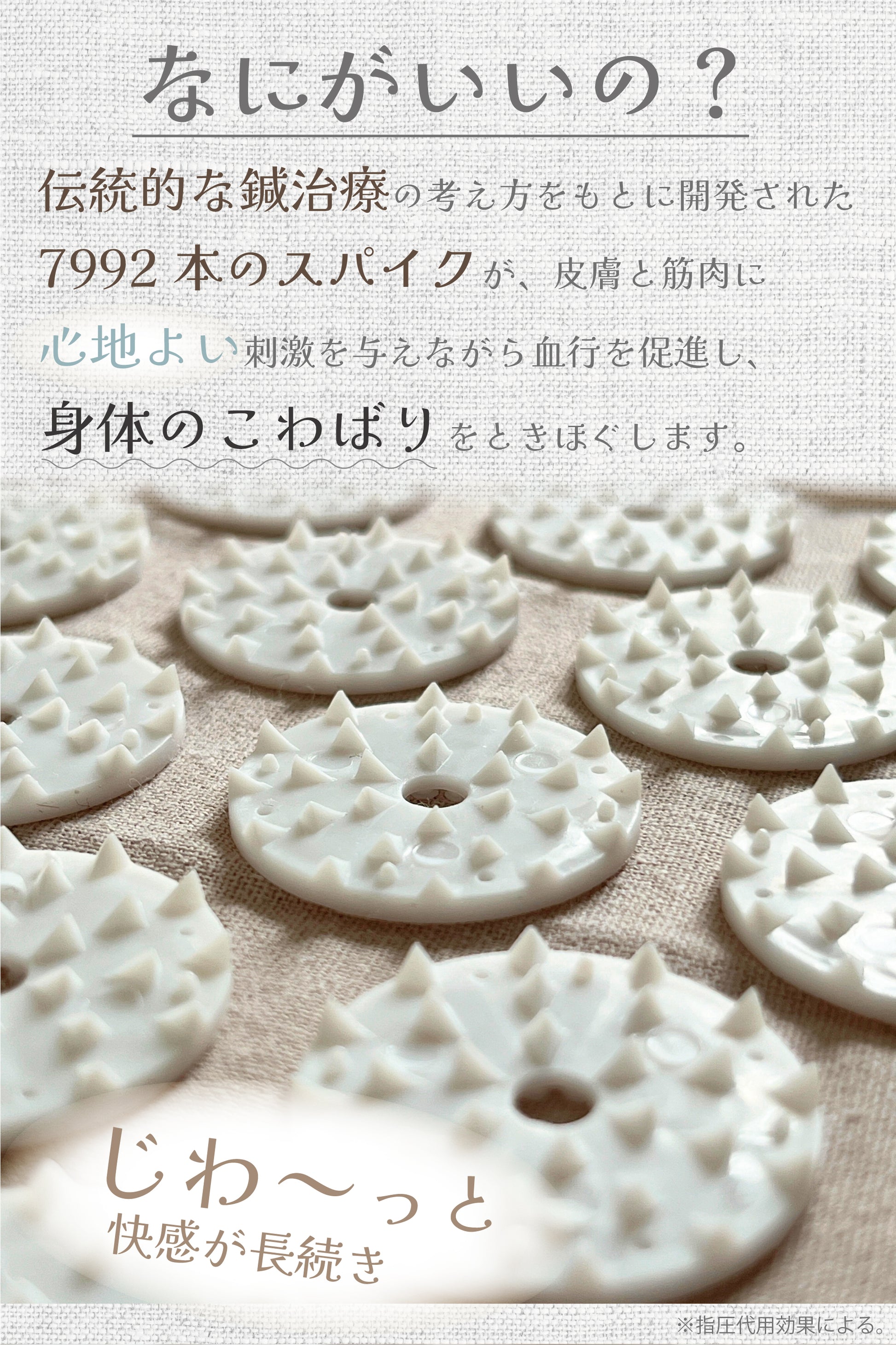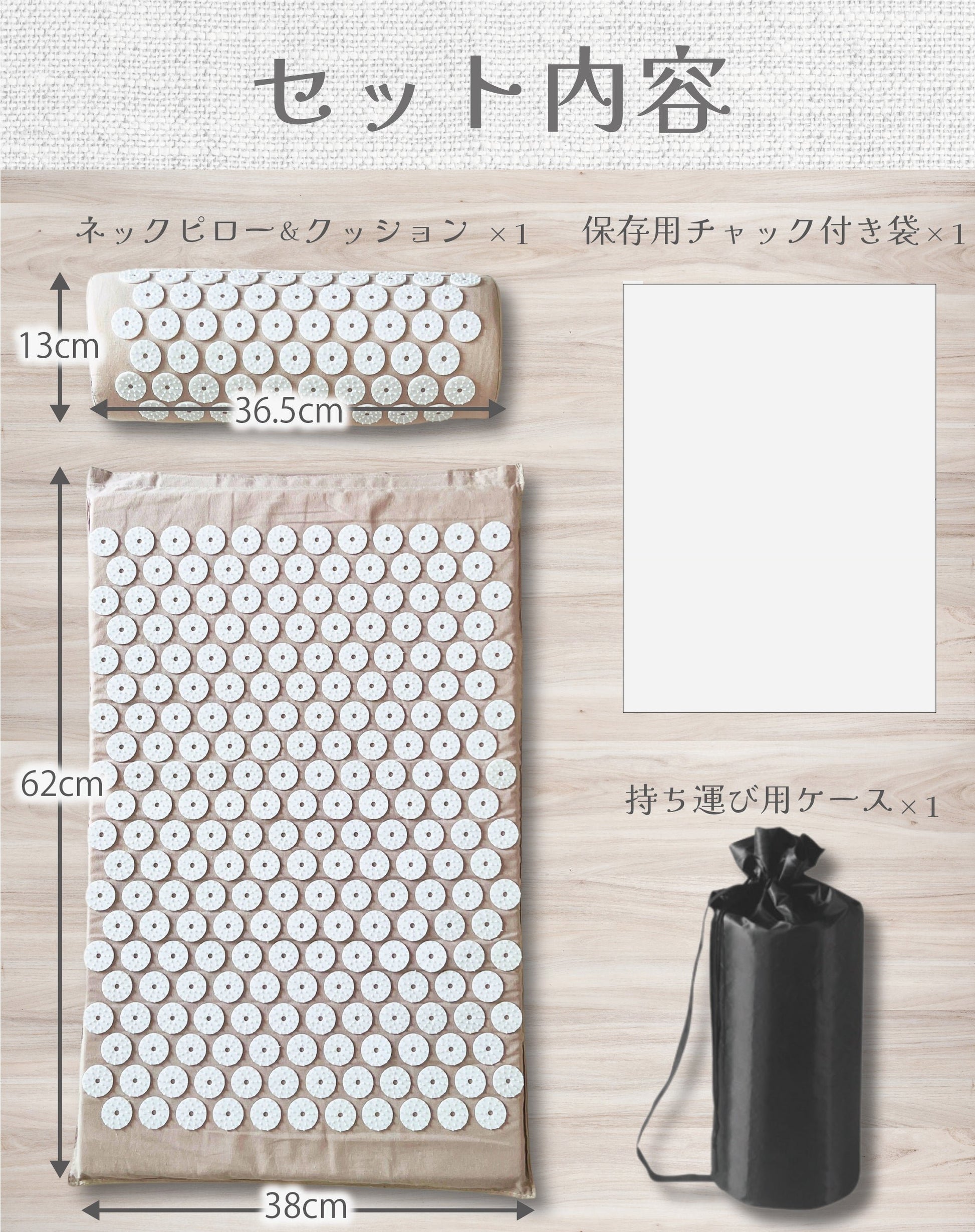 - ✅鍼治療の技術をもとに開発された健康リラクゼーションのためのマット・枕・専用ケースのセットです。数千のスパイク鍼が体中のツボ・皮膚・筋肉を刺激します。